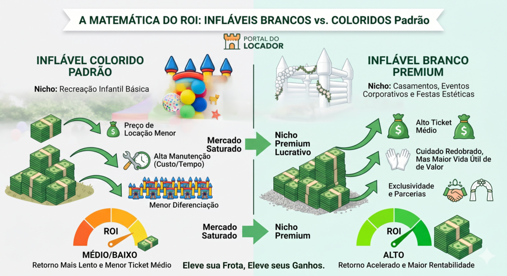 O que antes era visto como um “brinquedo que suja fácil” tornou-se o item mais disputado para eventos de alto ticket. Para o locador, não se trata apenas de uma nova cor, mas de uma mudança de nicho.